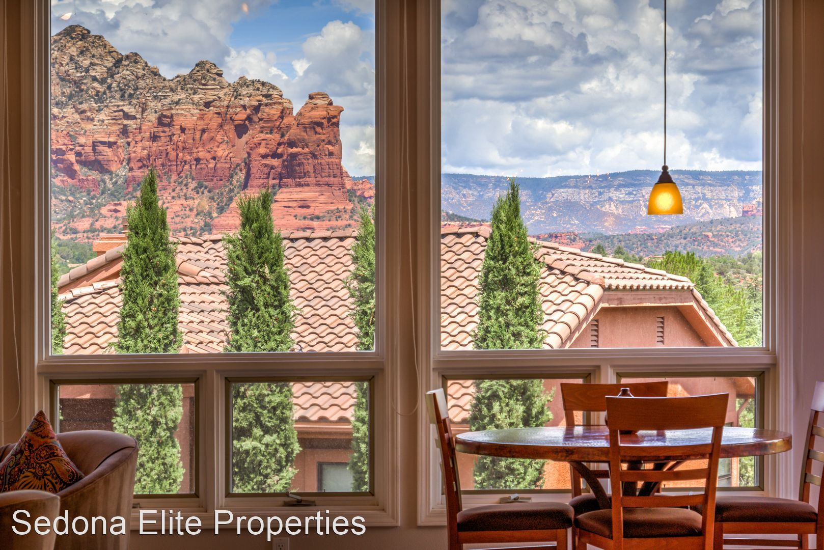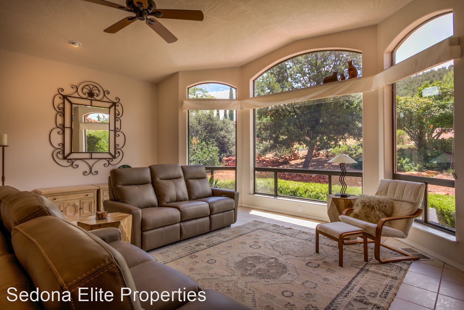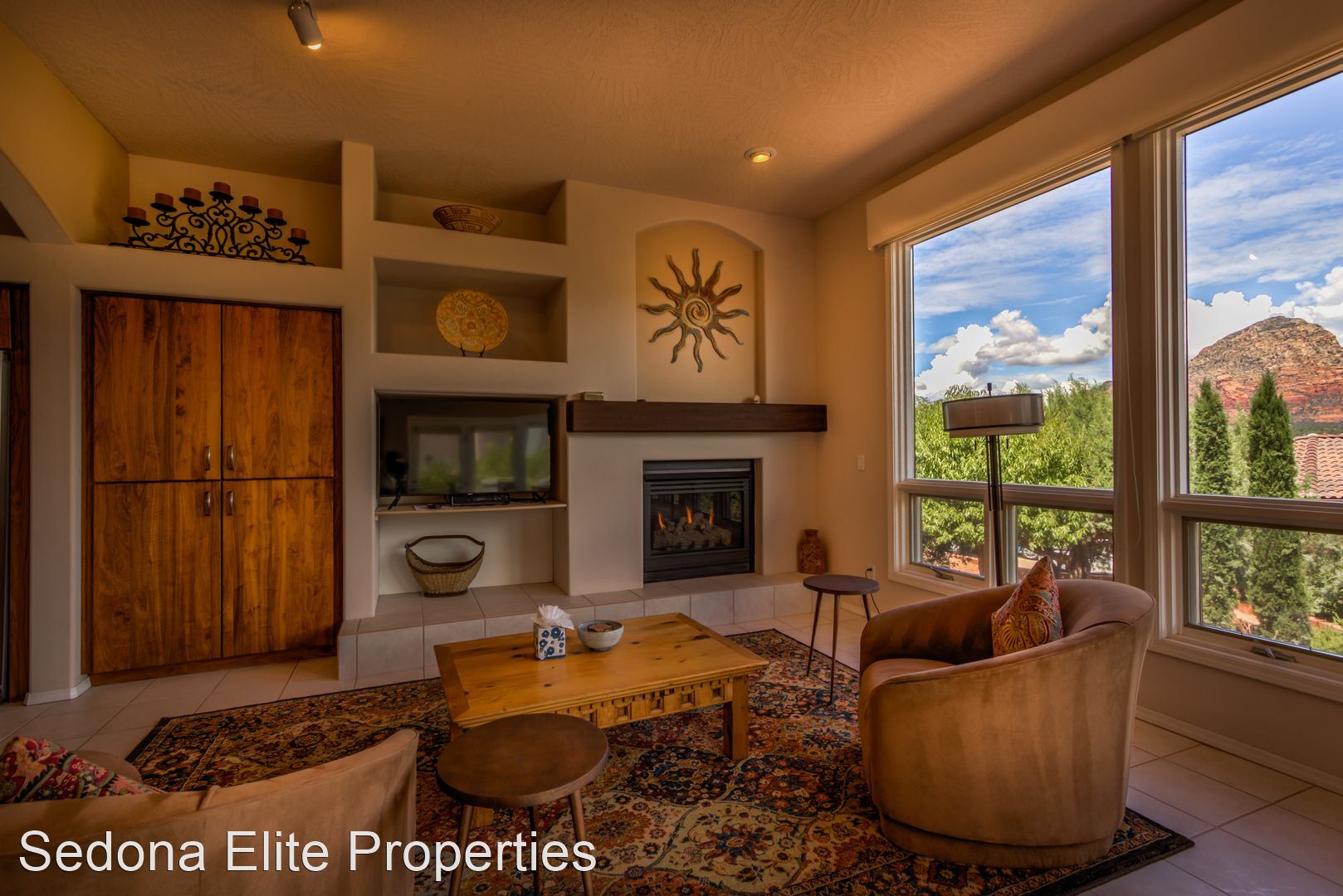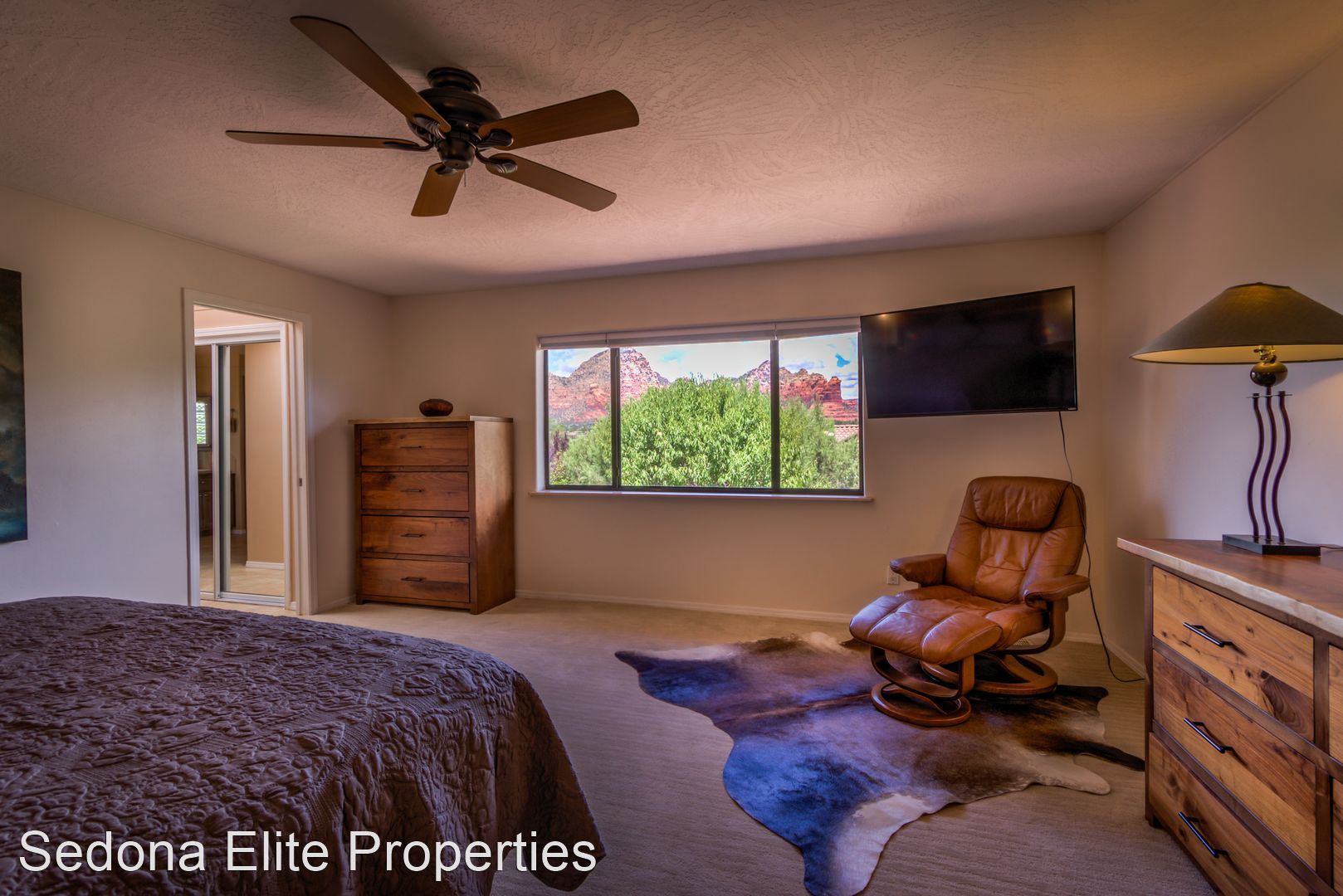 Furnished, 1 Month Minimum - Panoramic views abound from this incredible, single-level 3 bedroom/ 3 bathroom, 2,582 square foot home located within the Saddlerock subdivision in West Sedona. This split level floor plan offers residents and their guests privacy on opposite ends of the home or is perfect for a home-office setup with an additional room in case there is a guest. Step into the home and be welcomed by a large sitting room with huge picture windows that look out to the south of Sedona with views of airport mesa. The salon flows nicely into a formal dining area; a large chef's kitchen with beautiful, energy efficient appliances, solid walnut cabinets, and stunning Corian countertops; a breakfast nook; and another, separate entreating area with fireplace and television. The sitting area opens onto a large viewing deck that includes unobstructed views of Sedona's Red Rock to the North and includes an infrared heater for those chilly Sedona evenings. To the west of the home is a large master's quarters with large picture windows that again capture those incredible Red Rock views. En-suite bathroom includes silestone vanity tops; separate sinks; a large soaker tub; and a stand up shower with extensive closet space. On the other end of the home, two large guest rooms with a shared hall bathroom. Absolutely no smoking on the property. LEASING FEES: •Monthly Rent: $5,295 •Refundable Security Deposit: $1,000 •Non-Refundable Cleaning Deposit: $550 •2024 Monthly Rent: $5,395 AMENITIES INCLUDED IN LEASE: • Electricity, Water, Septic, Trash • Internet (50Mbps download) • Landscaping PET POLICY: Owner will consider one dog • $500 refundable pet deposit • $250 non-refundable pet fee. NOTES/DISCLAIMERS: • Property is on a septic system • Property is located with the Saddlerock Subdivision. Sedona Elite Properties does not advertise on Craigslist. Please contact the office about availability.