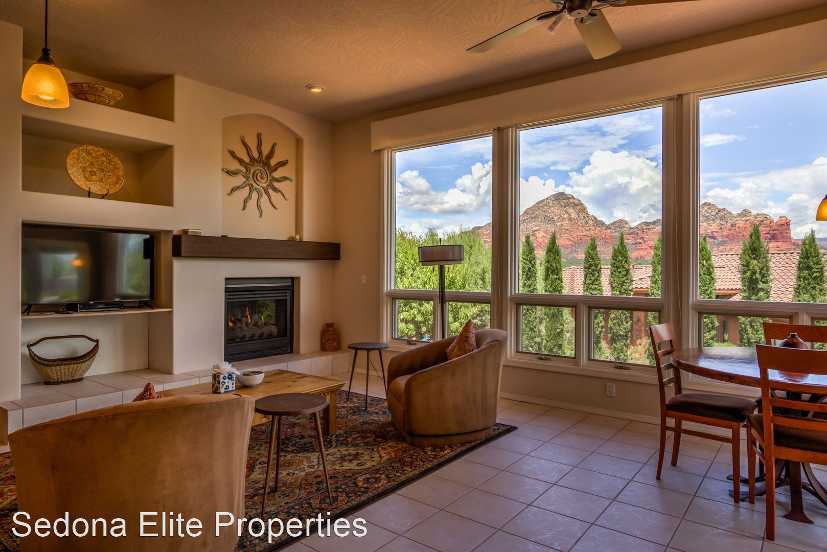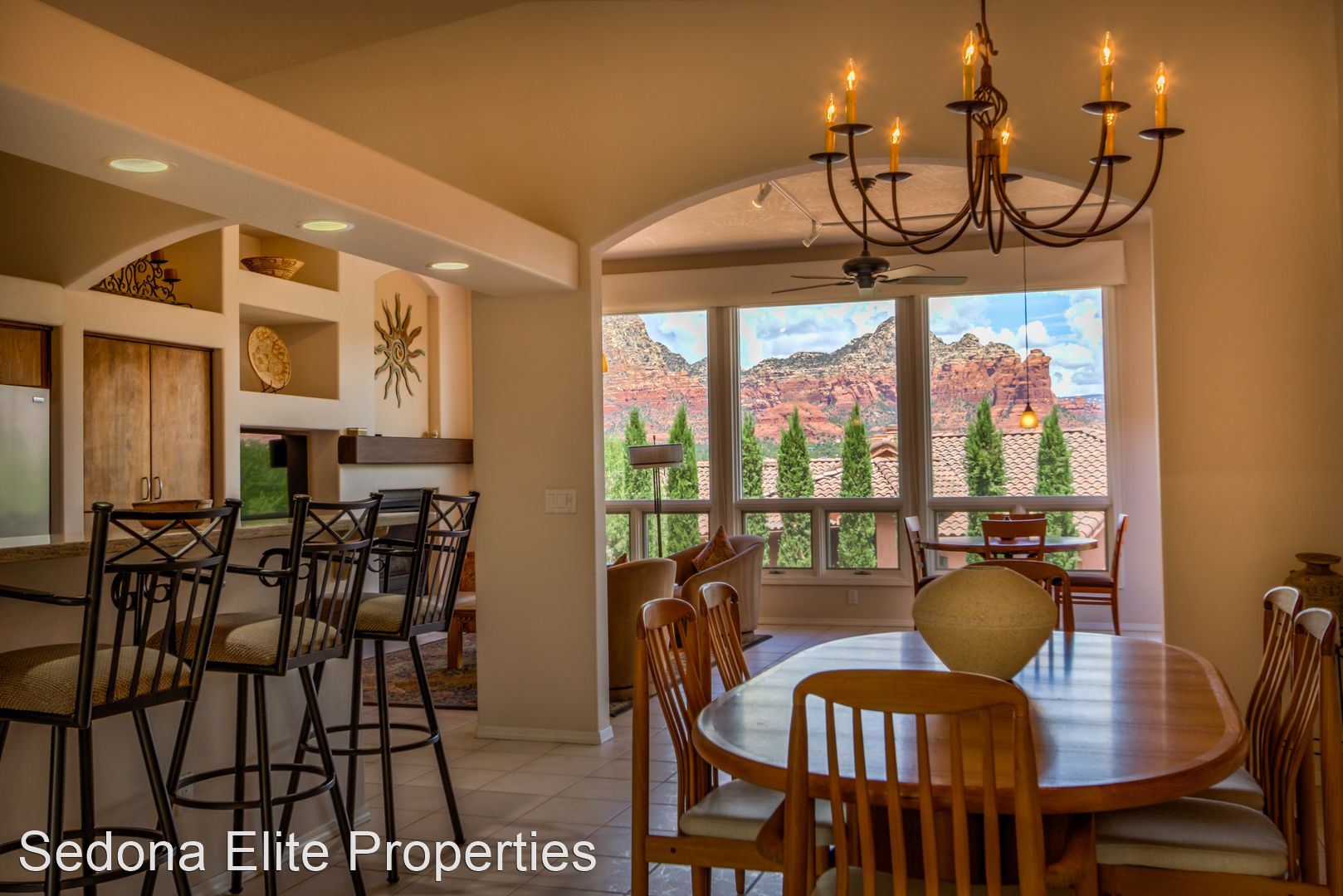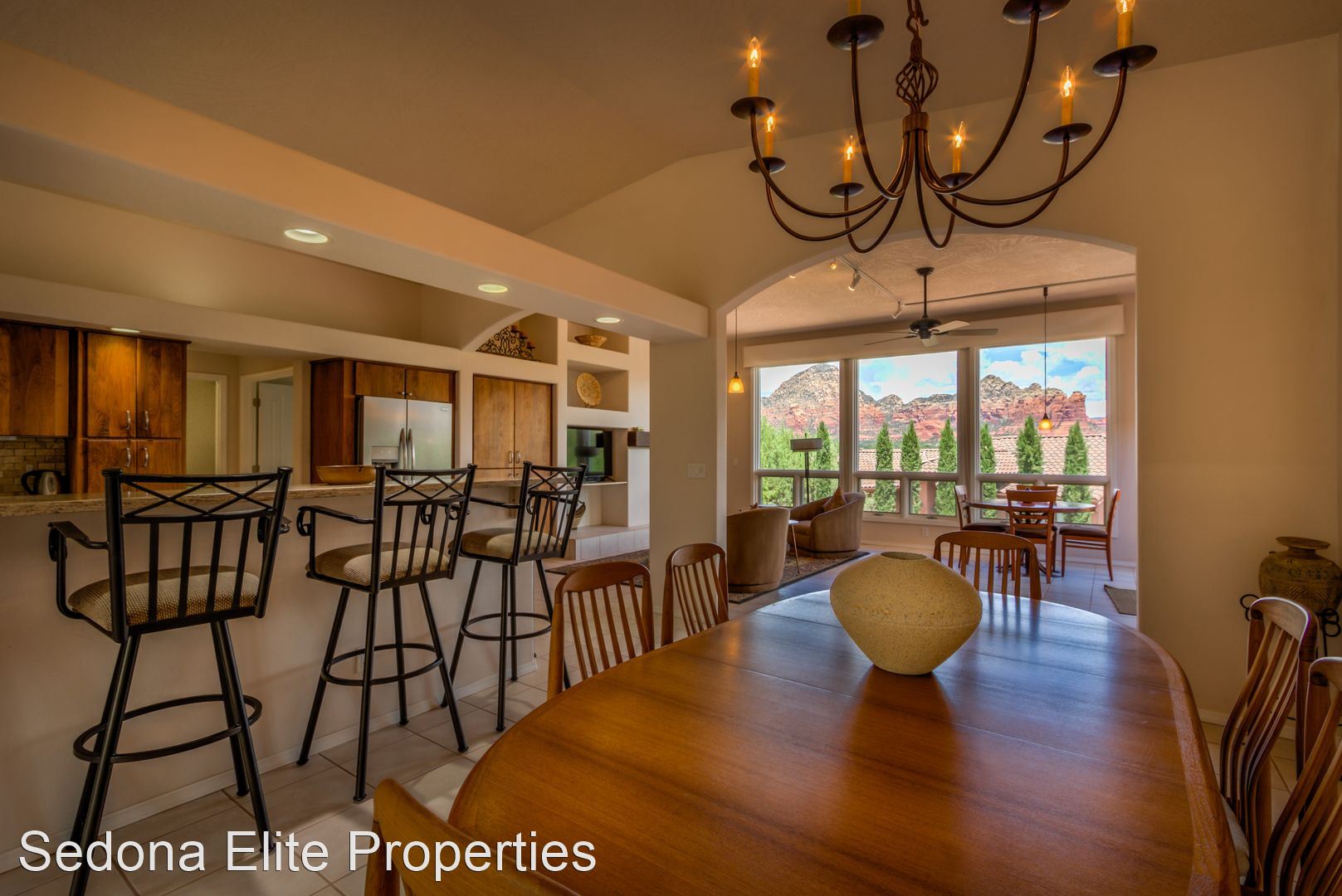 Furnished, 1 Month Minimum - Panoramic views abound from this incredible, single-level 3 bedroom/ 3 bathroom, 2,582 square foot home located within the Saddlerock subdivision in West Sedona. This split level floor plan offers residents and their guests privacy on opposite ends of the home or is perfect for a home-office setup with an additional room in case there is a guest. Step into the home and be welcomed by a large sitting room with huge picture windows that look out to the south of Sedona with views of airport mesa. The salon flows nicely into a formal dining area; a large chef's kitchen with beautiful, energy efficient appliances, solid walnut cabinets, and stunning Corian countertops; a breakfast nook; and another, separate entreating area with fireplace and television. The sitting area opens onto a large viewing deck that includes unobstructed views of Sedona's Red Rock to the North and includes an infrared heater for those chilly Sedona evenings. To the west of the home is a large master's quarters with large picture windows that again capture those incredible Red Rock views. En-suite bathroom includes silestone vanity tops; separate sinks; a large soaker tub; and a stand up shower with extensive closet space. On the other end of the home, two large guest rooms with a shared hall bathroom. Absolutely no smoking on the property. LEASING FEES: •Monthly Rent: $5,295 •Refundable Security Deposit: $1,000 •Non-Refundable Cleaning Deposit: $550 •2024 Monthly Rent: $5,395 AMENITIES INCLUDED IN LEASE: • Electricity, Water, Septic, Trash • Internet (50Mbps download) • Landscaping PET POLICY: Owner will consider one dog • $500 refundable pet deposit • $250 non-refundable pet fee. NOTES/DISCLAIMERS: • Property is on a septic system • Property is located with the Saddlerock Subdivision. Sedona Elite Properties does not advertise on Craigslist. Please contact the office about availability.