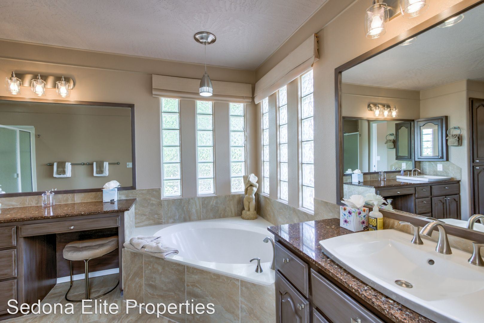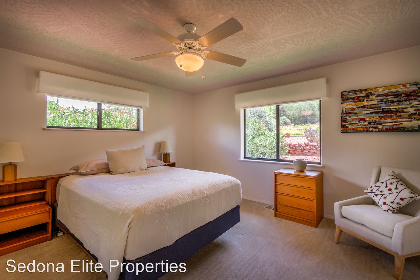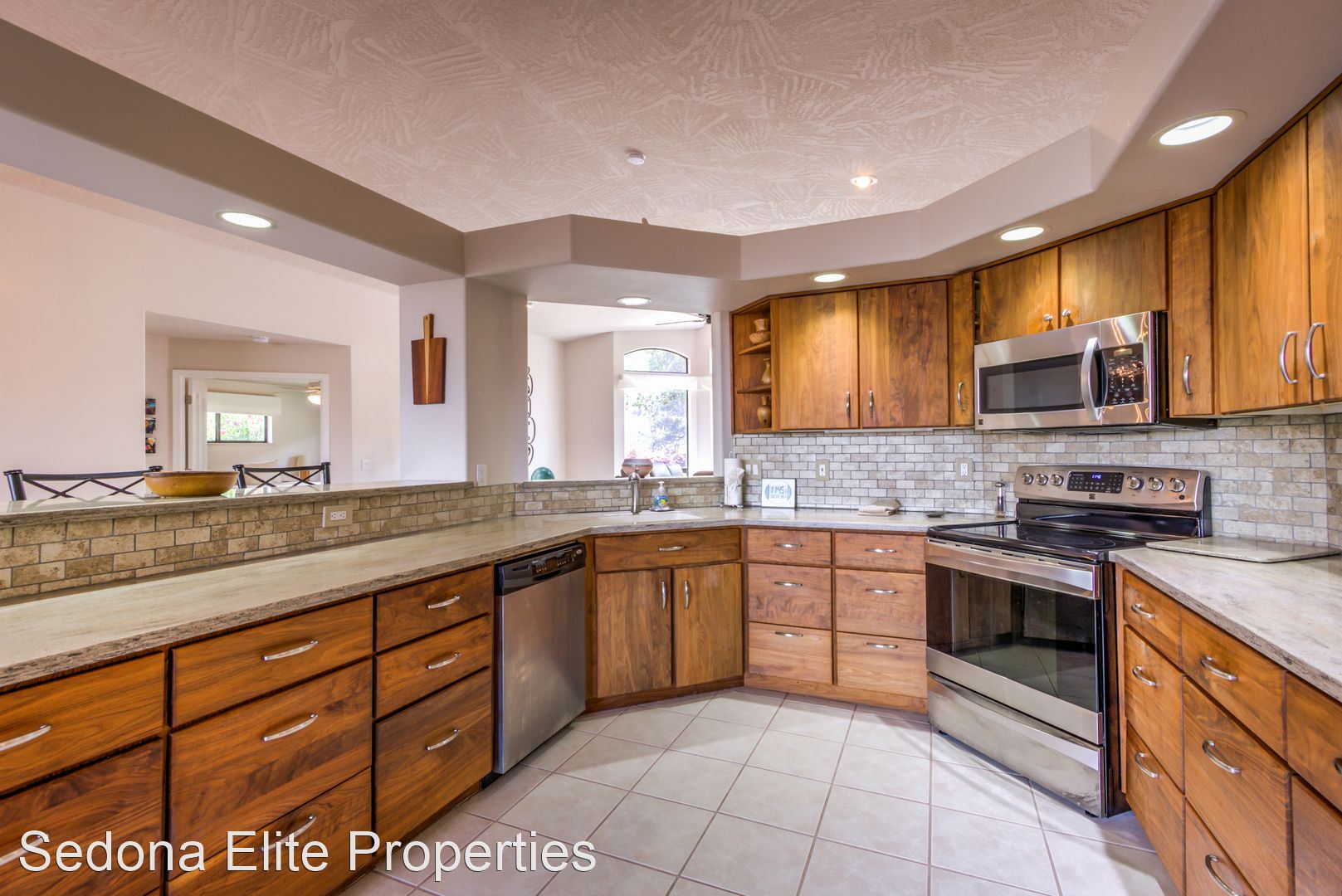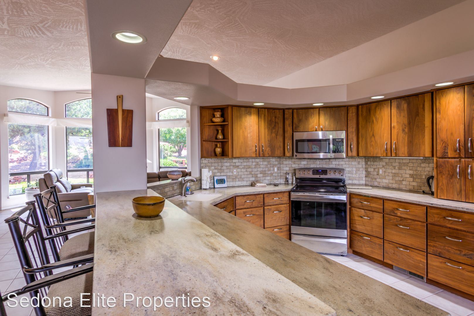 Furnished, 1 Month Minimum - Panoramic views abound from this incredible, single-level 3 bedroom/ 3 bathroom, 2,582 square foot home located within the Saddlerock subdivision in West Sedona. This split level floor plan offers residents and their guests privacy on opposite ends of the home or is perfect for a home-office setup with an additional room in case there is a guest. Step into the home and be welcomed by a large sitting room with huge picture windows that look out to the south of Sedona with views of airport mesa. The salon flows nicely into a formal dining area; a large chef's kitchen with beautiful, energy efficient appliances, solid walnut cabinets, and stunning Corian countertops; a breakfast nook; and another, separate entreating area with fireplace and television. The sitting area opens onto a large viewing deck that includes unobstructed views of Sedona's Red Rock to the North and includes an infrared heater for those chilly Sedona evenings. To the west of the home is a large master's quarters with large picture windows that again capture those incredible Red Rock views. En-suite bathroom includes silestone vanity tops; separate sinks; a large soaker tub; and a stand up shower with extensive closet space. On the other end of the home, two large guest rooms with a shared hall bathroom. Absolutely no smoking on the property. LEASING FEES: •Monthly Rent: $5,295 •Refundable Security Deposit: $1,000 •Non-Refundable Cleaning Deposit: $550 •2024 Monthly Rent: $5,395 AMENITIES INCLUDED IN LEASE: • Electricity, Water, Septic, Trash • Internet (50Mbps download) • Landscaping PET POLICY: Owner will consider one dog • $500 refundable pet deposit • $250 non-refundable pet fee. NOTES/DISCLAIMERS: • Property is on a septic system • Property is located with the Saddlerock Subdivision. Sedona Elite Properties does not advertise on Craigslist. Please contact the office about availability.