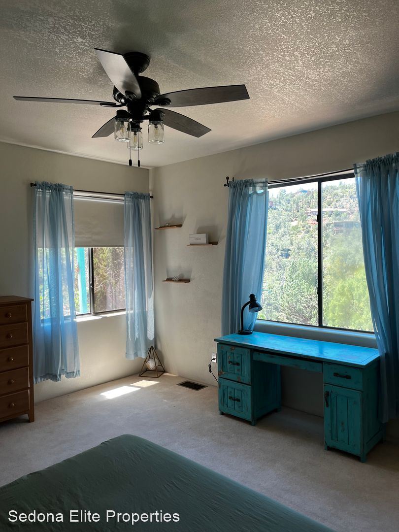 Furnished, 1 Month Minimum - This charming three bedroom, three bathroom home is located in the coveted Yavapino Estates on a sprawling lot that's nearly an acre. Unparalleled views of the mountains, private fruit trees, and fully fenced yard in a private setting just off of Highway 179. Large rooms with big windows and lot of light provide the perfect getaway.