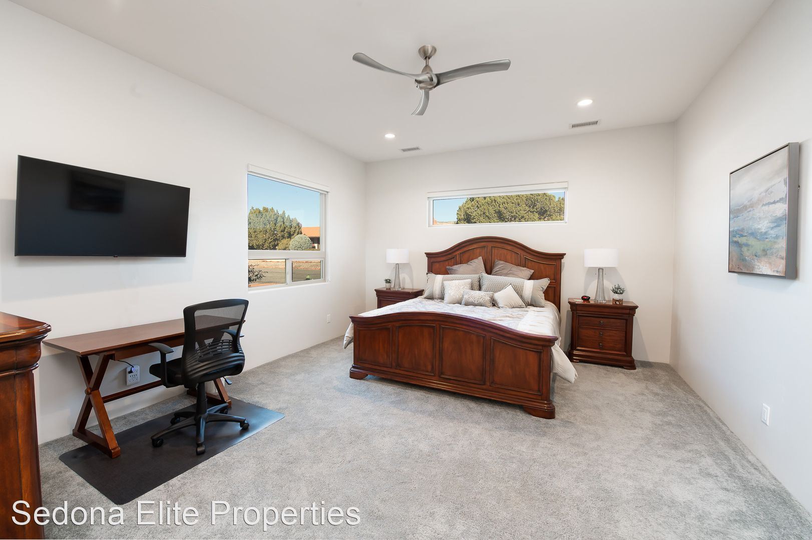 Furnished, 1 Month Minimum - This beautiful 3 bedroom, 2 bathroom split floor plan contemporary home was completed in 2019. Located in The Village of Oak Creek, the home offers spectacular views from both of the front and rear sitting areas and is located near shopping, hiking and golf. Upon entry, notice the incredibly detailed, yet refined design cues. The open kitchen offers white shaker cabinet with extensive quartz counter tops and a large island with plenty of seating; perfect for a quiet evening for two or a larger get together. The spacious master suite has unobstructed red rock views, an enormous walk in closet, and a private exit to the rear patio. The en suite master bath has to be seen with an oversized soak tub, large walk-shower shower, dual vanities, and an impressive stone accent wall. Master bath has walk-in shower, dual vanities, free standing soaking tub and a large stone accent wall. Bedrooms on the opposite side of the home offer privacy for guests as well as a large bathroom. Laundry room includes state of the art machines and plenty of storage. Large rear covered patio is perfect for watching the sun go up (or down), dining, or gathering with friends. Smart T.V. only. No Cable or Satellite. 2024 rental rate is $5,000/mo Absolutely no smoking on the property ** No Pets LEASING FEES: Monthly Rent: $4,800 Refundable Security Deposit: $1,000 Non-Refundable Cleaning Deposit: $550 AMENITIES INCLUDED IN LEASE: • Weekly Trash Pickup • Landscaping UTILITIES: •Landlord is responsible for all utilities "within reason". Utilities include: electricity, natural gas, water, internet/cable, and trash. APPROVAL REQUIREMENTS: Qualified applicants must: • Supply current verifiable income • Complete an application if over the age of 18 • Qualify on their own - co-signers will not be considered NOTES/DISCLAIMERS: • Property is furnished • 30 day minimum lease agreement as per the HOA. • Property is located within a HOA - please review CC&Rs before applying and be mindful of parking restrictions for both tenant and guest; over-sized vehicle/diesel truck restrictions; no commercial vehicles to be parked at the home; all vehicles must be stored in the garage or behind the fence; home based business restrictions; etc. Any questions about HOA requirements or restrictions should be asked prior to completing an application Please contact the office directly about availability.